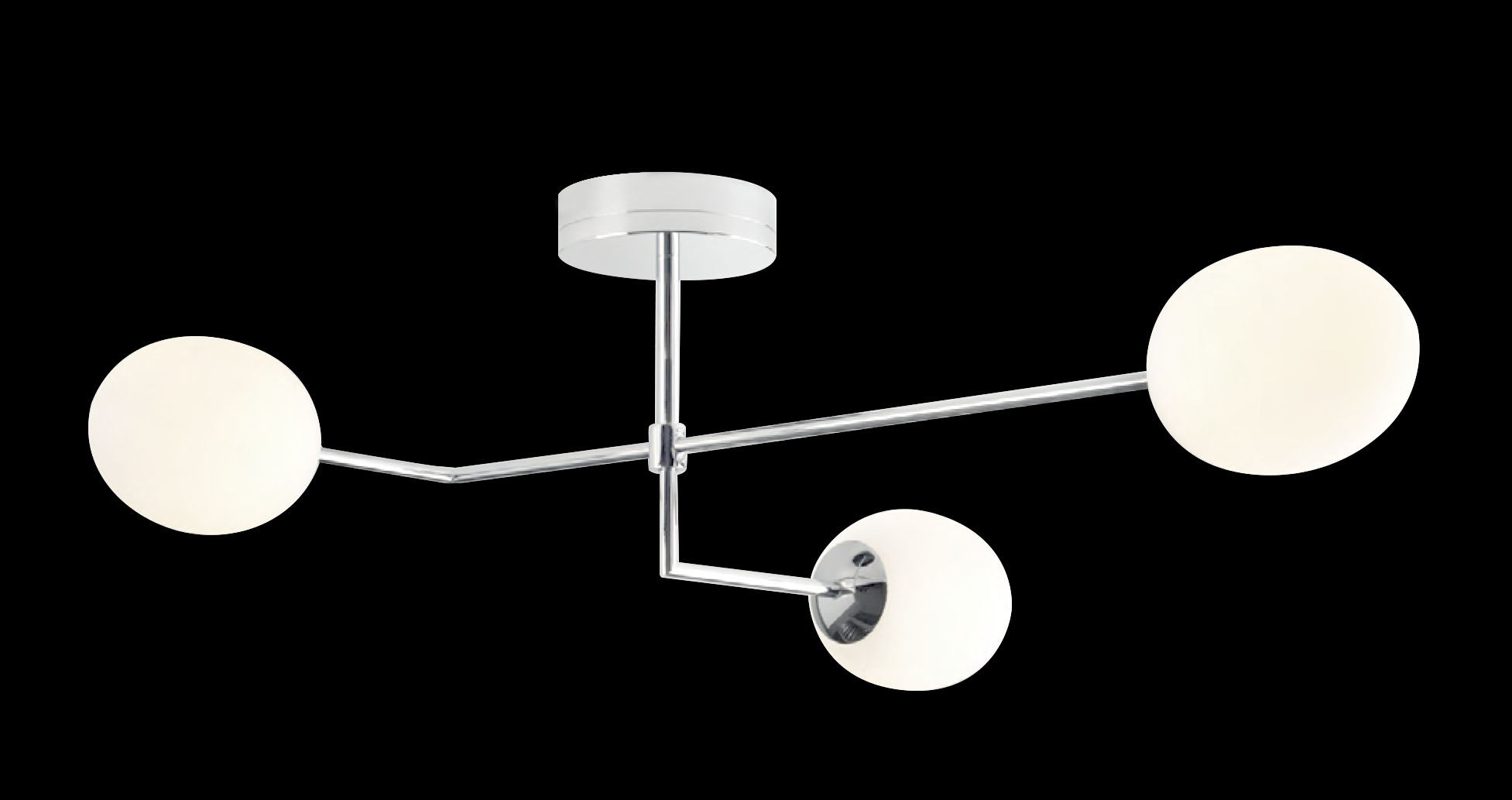 From our stylish collection of bathroom ceiling lights this fitting will provide practical illumination for your bathroom through the three spotlights, IP44 rated for bathrooms but can still be used in corridors and other living spaces.This stylish fitting complements any design and displays a circular ceiling mount which lowers a single narrow stem that branches out to hold 3 rounded egg shaped white diffusers. The range come in three finishes, Polished Chrome ,Satin Nickel and Golden Finished.