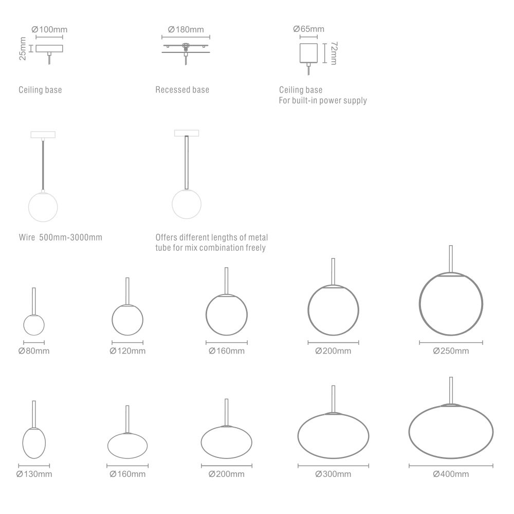 IC or G9 LED type both available. High quality milky white blown glass, makes your room warm and romantic. Different mounting bases, adjustable suspension cable or tube length and various lamshades can be freely combined. Available in warm white, neutral white and cool white LED, allowing you to create the perfect mood lighting to suit your cabinetry.